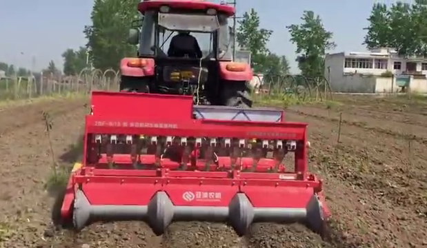 機(jī)具組裝好后,用戶開(kāi)著拖拉機(jī),帶著種子,開(kāi)始到田間耕種。
