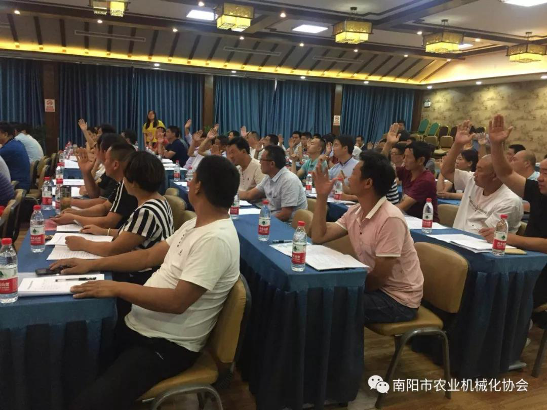 7月3日,南陽市農業(yè)機械化協會成立大會在南陽市鷗凱印象酒店3樓會議室召開,南陽市農業(yè)機械化管理局黨組書記、局長劉勤同志出席會議并做重要講話。選舉通過田云鎖(原南陽市農業(yè)機械公司總經理)同志當選為會長,亞澳南陽農機有限責任公司總經理史炳哲、南陽奇豐機械有限責任公司董事長趙順奇、鎮(zhèn)平縣糧豐農機農民專業(yè)合作社理事長薛云濤當選為副會長。