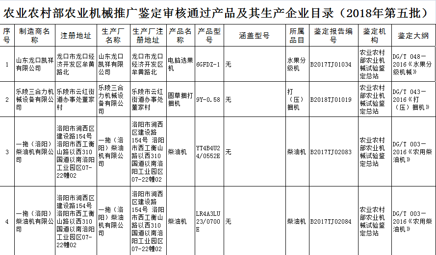 根據(jù)農(nóng)業(yè)部農(nóng)業(yè)機(jī)械試驗(yàn)鑒定總站2018年第五批部級(jí)農(nóng)機(jī)推廣鑒定結(jié)果的公示,9個(gè)型號(hào)的機(jī)型全部通過農(nóng)機(jī)鑒定總站的批準(zhǔn)。