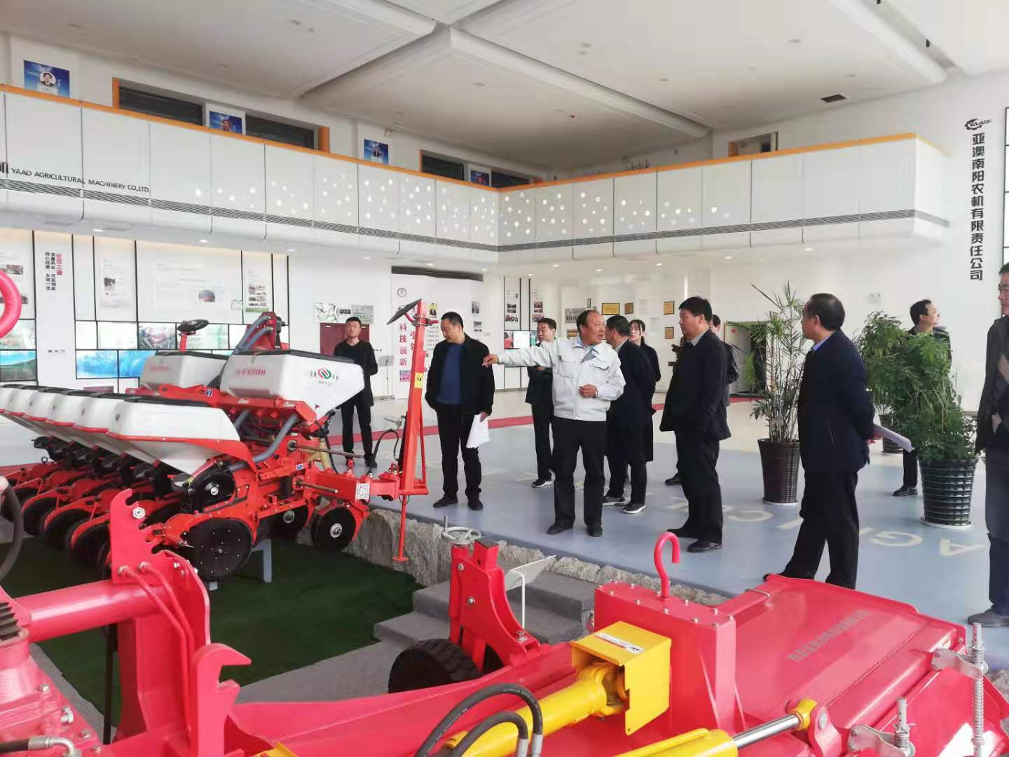 2019年11月19日上午,南陽市市委辦副主任趙玉云攜市發(fā)改委副調(diào)研員馬秋柏等一行在唐河縣工信局領(lǐng)導(dǎo)的陪同下蒞臨亞澳農(nóng)機(jī)視察亞大型復(fù)式旋耕機(jī)智能制造新模式項目發(fā)展建設(shè)情況。