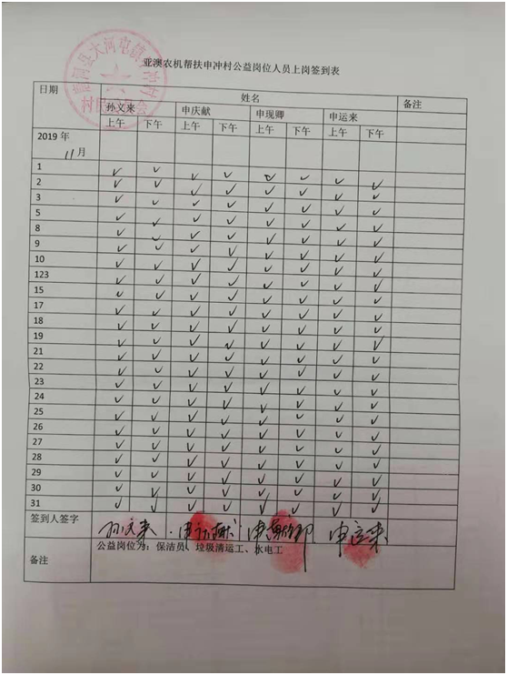 除此之外,我公司聯(lián)合村委會照顧一些特別貧困但有行動能力的老人為村部垃圾清運(yùn)、水電維修、村落清潔等,并為此購買公益崗位,每月定期給這些公益崗位發(fā)放工資500元/個月,以確保他們的正常生活。這一決定從2018年5月至今已經(jīng)實(shí)行了一年半時間,累計(jì)發(fā)放公益崗位工資3.1萬元。