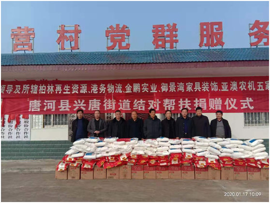 捐贈儀式上產(chǎn)業(yè)集聚區(qū)黨委書記劉清文、主任李國營代表興唐街道黨委、政府向五家企業(yè)的義舉表示感謝。他指出,以亞澳農(nóng)機為首的這五家公司,在完成自身企業(yè)負責(zé)包片貧困村脫貧的基礎(chǔ)上,還能再拿出現(xiàn)金3000元捐資扶貧,將自己的社會責(zé)任意識,由助力脫貧攻堅,走向現(xiàn)在回饋社會。代表著我縣企業(yè)經(jīng)營由起步走向成熟。他希望廣大困難群眾正確面對暫時的困難,樹立戰(zhàn)勝貧困、走出困境的信心和勇氣,發(fā)揚自力更生、艱苦奮斗的精神,不等不靠,在黨委、政府和社會各界的支持和幫助下,以自身的努力和實干來化解生產(chǎn)、生活中的各種困難,為構(gòu)建美麗和諧的新唐河作出自己的貢獻。