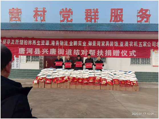 元月17日上午,張店鎮(zhèn)王營村部廣場人頭攢動,捐贈物資整齊擺放,這是興唐街道結(jié)對幫扶扶貧物資捐贈活動現(xiàn)場。為扎實推進精準扶貧工作,確保扶貧工作取得實效,產(chǎn)業(yè)集聚區(qū)興唐街道和轄區(qū)港務(wù)物流、亞澳農(nóng)機、金鵬實業(yè)等五家愛心企業(yè)聯(lián)合舉辦了此次活動。