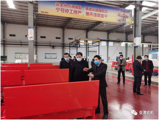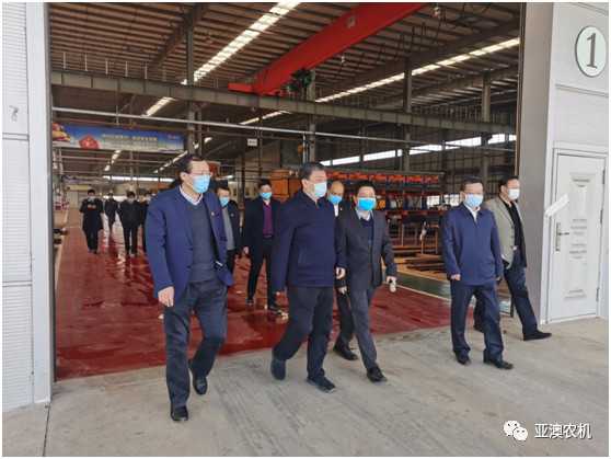 霍好勝一行在亞澳農(nóng)機調(diào)研與公司總經(jīng)理史炳哲進行深入交流,詳細了解疫情防控、復工進度和遇到的困難等問題,并深入生產(chǎn)區(qū)一線現(xiàn)場查看企業(yè)的生產(chǎn)狀況。