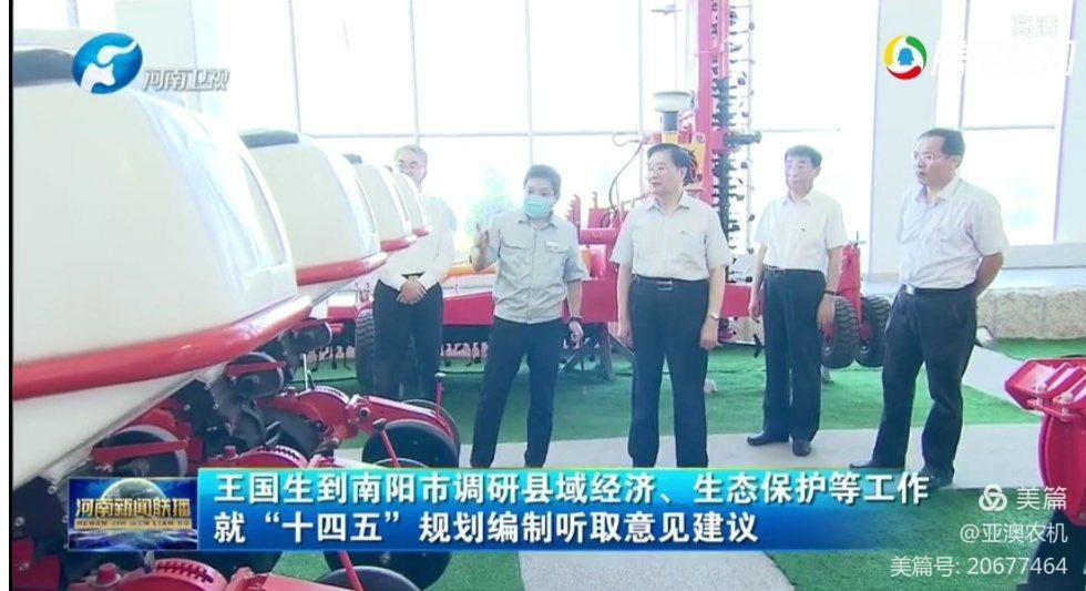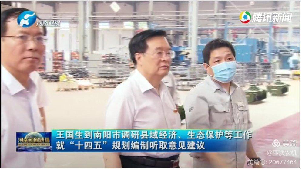 在唐河縣亞澳南陽農(nóng)機有限責(zé)任公司,王國生仔細了解企業(yè)生產(chǎn)經(jīng)營、訂單變化,詢問農(nóng)機市場銷售情況,指出我省縣域面積大、人口多,蘊藏著巨大的消費需求,要加快推進農(nóng)業(yè)現(xiàn)代化,挖掘消費潛力,拓展內(nèi)需空間,在暢通國內(nèi)經(jīng)濟大循環(huán)中贏得先機。