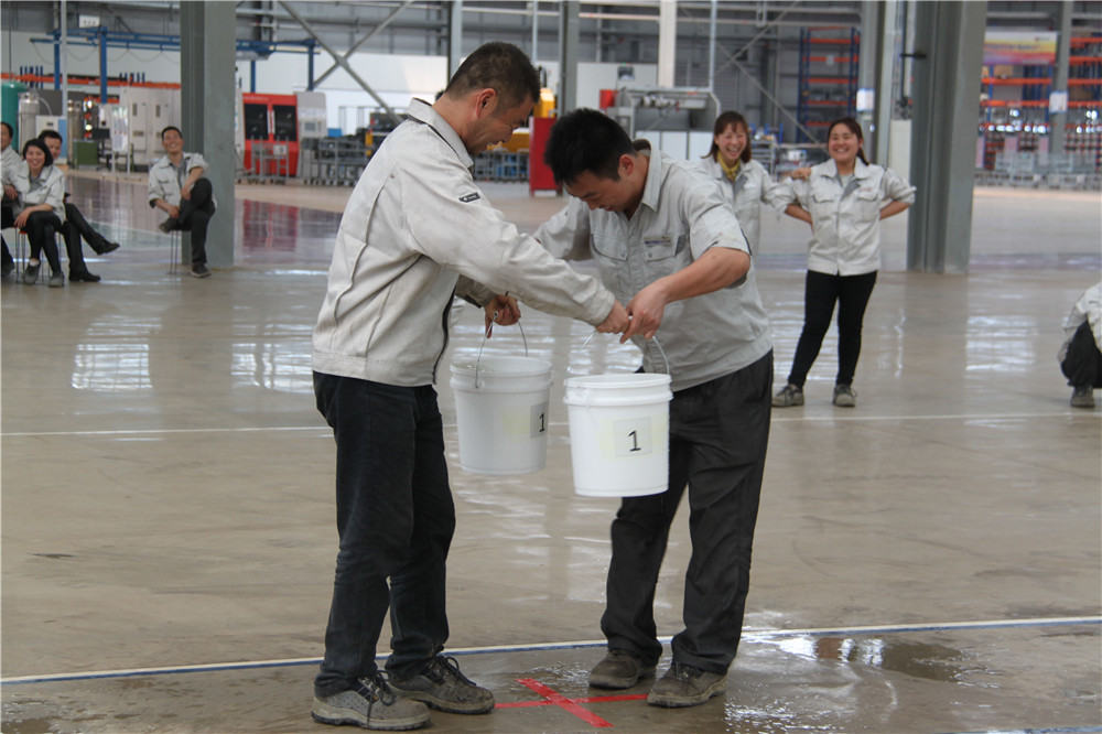 下午13:30在運(yùn)動(dòng)場(chǎng)出現(xiàn)了擺放有序的水桶,這是我們的第二項(xiàng)活動(dòng):精益運(yùn)輸大接力,取水點(diǎn)的距離分別大于等于10米,每個(gè)桶分別裝滿10L水,每組隊(duì)員是五個(gè)人,要在120秒內(nèi)完成大桶水量的收集,超過120秒的隊(duì)員淘汰出局,在規(guī)定的時(shí)間內(nèi),水量收集多者獲勝,抽簽決定出場(chǎng)順序,這項(xiàng)活動(dòng)是讓員工明白精益化生產(chǎn)體系的精髓所在之處;減少過程浪費(fèi),實(shí)現(xiàn)低成本的快速交付,滿足客戶的同時(shí),做到細(xì)節(jié)控制,提升產(chǎn)品使用價(jià)值,提升公司盈利空間。比賽開始了只見隊(duì)員雙手提起20L的水往下一站的隊(duì)友那里送,中間會(huì)有灑水會(huì)很累,但是每個(gè)人都為了自己隊(duì)伍的榮譽(yù)拼盡全力向終點(diǎn)奔去,旁邊的隊(duì)友為他們加油、吶喊,最終自焊獲得第一名。