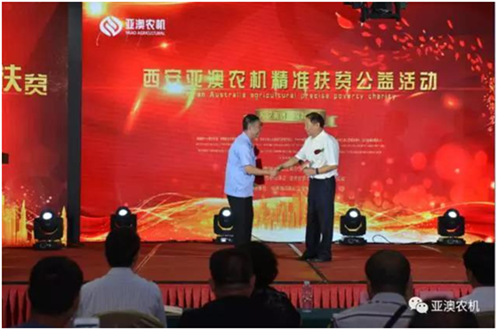 亞澳精準(zhǔn)扶貧公益活動現(xiàn)場,中國農(nóng)機(jī)化協(xié)會會長劉憲到會致辭,并給予亞澳頒發(fā)證書。