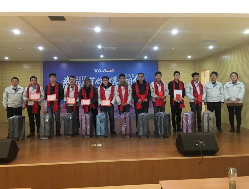 年會(huì)初始,總經(jīng)理史炳哲致新年賀詞,并做了2017年年度總結(jié),宣讀了2018年度規(guī)劃。對(duì)亞澳全體員工在過(guò)去一年中做出的努力和奉獻(xiàn)給予了充分的肯定和贊揚(yáng)。接著由生產(chǎn)主管王紅衛(wèi)和質(zhì)檢作業(yè)長(zhǎng)朱謹(jǐn)超分別為我們作了2017年工作總結(jié)及涂裝質(zhì)量問(wèn)題分析。最后由總經(jīng)辦郭靖特助宣讀了2017年度表彰決定,對(duì)優(yōu)秀員工,優(yōu)秀班組、市場(chǎng)開(kāi)發(fā)先鋒、項(xiàng)目申報(bào)、新產(chǎn)品開(kāi)發(fā)等五個(gè)獎(jiǎng)項(xiàng),共15人進(jìn)行了表彰。