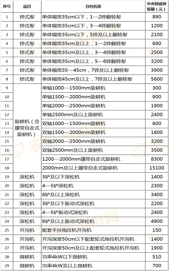 2019年農(nóng)機(jī)購置補(bǔ)貼額一覽表