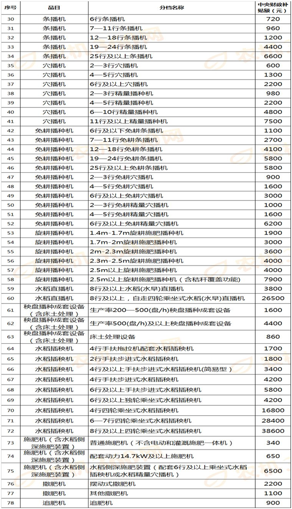 "備注:對穴播機(jī)品目先按排種器形式分檔,其中精量排種器包括氣力式和達(dá)到精量要求的指夾式,其他列為普通型式;