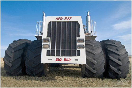 BigBud 747:當(dāng)年購(gòu)置這臺(tái)拖拉機(jī)花費(fèi)了30多萬(wàn)美金,要知道這是在四十多年前,放到現(xiàn)在的話需要300多萬(wàn)美金。之所以取名“747”是為了與當(dāng)時(shí)最大的噴氣客機(jī)“波音747”相呼應(yīng),來(lái)顯示它的巨大。