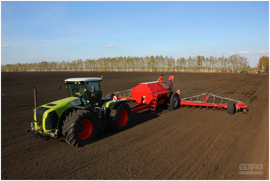 3、科樂(lè)收XERION系列剛剛上市的時(shí)候售價(jià)高達(dá)100萬(wàn)美金。這款采用無(wú)級(jí)變速的拖拉機(jī)采用卡特彼勒 C13 6 缸發(fā)動(dòng)機(jī),最大功率可達(dá) 401–487 馬力,最高時(shí)速可達(dá)50公里/小時(shí)。